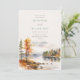 Donnez le ton à votre mariage de automne avec cette invitation romantique, avec un lac serein et une scène de montagne superposés sur des imprimés de lin rustique. Idéal pour un mariage extérieur douillet, des événements d'automne ou des mariages de destination au bord de l'eau. Personnalisable avec vos noms, dates et emplacement - partie de notre collection de Mariages de automne pour une suite de papeterie coordonnée.