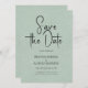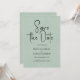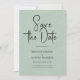 Whimsical minimaliste moderne, personnalisable typographie de script noir, élégante invitation à sauvegarder la date. L'arrière - plan de texture de lin imprimé vert pâle ajoute une touche d'élégance classique et organique. D'autres couleurs sont disponibles.