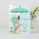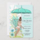 L'invitation de douche de lingerie de mariage présente des fleurs tropicales de couleur bleu d'œuf de robin et de sarcelle, un parapluie et une mariée brune à venir. Disponible avec des cheveux blonds, bruns et roux et une peau claire et foncée.
