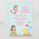 Ce invitation de fête d'anniversaire de 5x7 pour filles a un joli thème de sirène sous-marine. Il y a trois sirènes différentes, deux avec des cheveux bruns et une avec des cheveux blonds, avec quelques poissons qui nagent autour. Vous pouvez facilement customiser vos informations de fête au milieu. Cocoa Studio