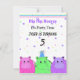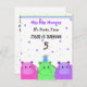 Une invitation à l'anniversaire mignonne agrémentée de trois hippopotames colorés sur un arrière - plan de cercles et de points colorés.