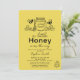 This cute "little honey" hand-drawn/doodle style baby shower invitation features a mustard yellow background with a honey jar and dipper, bees, and flowers. Personalize it for your needs. You can find matching products at my store.