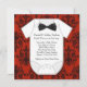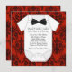 Adorable damas rouge et noir, arc noir cravate et chemise rouge bébé garçon invitation à la douche rouge et noire. Cette invitation de baby shower damassé rouge et noir mignon est facilement customisée pour votre événement en ajoutant les détails de votre événement, le style de police, la taille et la couleur de police et le libellé.