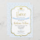 Invitation Little Prince Boy Baby shower Blue Damask