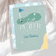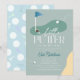 This retro modern "a little putter on the way" boy's baby shower invitation features a blue flag and golf balls with a fairway and bunker in a golf course. The reverse side features a light blue background with a golf ball and tee pattern. Personalize it for your needs. You can find matching products at my store.
