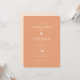 This elegant wedding invitation features a minimalist and sophisticated design with a soft peach background, creating an inviting and warm atmosphere. The clean typography adds a touch of modernity while maintaining timeless charm, perfect for couples looking to celebrate their special day in style. With its simple yet refined aesthetic, this invitation is ideal for a romantic and intimate wedding celebration, ensuring your guests feel the love and anticipation leading up to the big event.