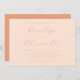 This elegant wedding invitation features a soft, blush pink background with sophisticated cursive typography that adds an air of timeless romance. The minimalist design focuses on the beauty of clean lines and understated color, creating a warm and inviting atmosphere perfect for celebrating love. Ideal for couples seeking a classic yet modern aesthetic, this invitation sets the tone for a memorable and intimate celebration. Customize it to reflect your special day details and share the joyous news with your loved ones in style.
