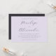 This elegant wedding invitation features a sophisticated and timeless design with an understated lavender background. The typography is gracefully scripted, adding a touch of elegance and formality to the overall look. The minimalist color palette creates a serene and refined mood, perfect for a classic celebration. Ideal for couples seeking a chic and polished aesthetic, this invitation sets the tone for an unforgettable evening filled with love and joy. Personalize it effortlessly to reflect your special day's details.