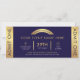 Créez des billets élégants pour votre entreprise ou événement privé en utilisant ce modèle de billet Admit One dans les tons bleu marine et or. Avec des effets de faux foil doré, une mise en page professionnelle offrant un espace pour le nom de votre événement, la date, l'adresse, le prix du billet ainsi que votre logo et les conditions générales au verso. Ce billet de société à effet métallique luxueux peut être utilisé comme un laissez-passer pour votre dîner de gala, soirée de charité, collecte de fonds, concert, billet-cadeau d'anniversaire, mariage ou tout autre type d'événement.