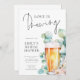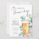 Love is Brewing Beer and Eucalyptus Bridal Shower Available digitally and printed. The word Brewing is in a modern non-editable script. The rest of the text you can easily personalise. With a watercolor beer and euclyptus leaves illustration.
