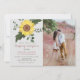 Tournesol et verdure rustique, géant, allié à l'arrière - plan beige et à la terre cuite tendance à l'arrière. Elégant, moderne, unique faire-part de mariage avec photo personnalisée du couple.