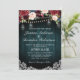 Invitation de mariage bohème florale en bois rustique de campagne avec des graphiques de fleurs aquarelles peintes à la main / roses dans des tons riches de Bourgogne, rouge Marsala, sarcelle et rose blush / pêche et police de style lettrage manuscrit charmant avec des lumières de chaîne, pot mason et fond en bois de dentelle. Veuillez me contacter pour toute aide de personnalisation ou si vous avez besoin d'un autre produit avec ce design.