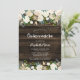 Belle aquarelle blanche et or fleurs et verdure accentuent cet élégant pays Quinceanera invitation fête d'anniversaire. Ce design comprend également des lampes à cordes et un arrière - plan en bois de grange foncé avec une police de caractères de script moderne. Parfait pour une douceur à thème occidentale quinze ! PAS VRAIMENT D'OR FOIL