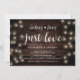 Belle simplicité, juste l'amour, faire-part / carte d'invitation de mariage intime, dans un design rustique moderne, lumières de chaîne de ferme, thème papier brun en bois. C'est parfait pour votre réception de mariage et fête de célébration après le mariage. Ajoutez vos détails dans la même police / lettrage.