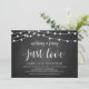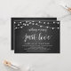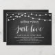 Rien de Fantaisiste, Juste l'Amour, Faire-Part de Mariage Intime / Carte d'Invitation de Fête, dans un design Rustique Moderne, Lumières Guinguette de Ferme, thème Tableau Noir. C'est parfait pour votre réception de mariage et fête de célébration post-mariage. Ajoutez vos détails dans la même police / lettrage.