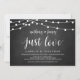 Rien de Fantaisiste, Juste l'Amour, Faire-Part / Carte d'Invitation de Mariage Intime, dans un design Rustique Moderne, Lumières Guirlandes de Ferme, thème Tableau Noir. C'est parfait pour votre réception de mariage et fête de célébration après le mariage. Ajoutez vos détails dans la même police / lettrage.