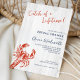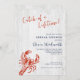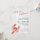 Cette invitation de lunch de mariage rustique en bord de mer présente un fond en bois rustique clair, avec un homard dessiné à la main en rouge, et le dicton astucieux « Capture d'une vie » dans un script d'écriture manuscrite décontracté.