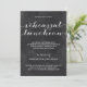 Cette invitation de lunch de répétition élégante de style tableau noir présente une police de calligraphie manuscrite fantaisiste de style vintage et un fond de tableau noir. Les détails de l'événement peuvent être personnalisés pour votre fête.