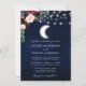 Faire-part de mariage céleste. Aquarelle bleu nuit ciel avec lumières à cordes et la lune. Floral bleu Bourgogne rose. Feuilles de verdure d'Eucalyptus.