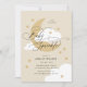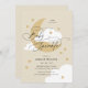 Invitation Lune et étoiles Beige Élégant Script Bébé Parsemer