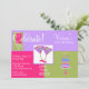 Invitation colorée à la fête d'anniversaire faite en lavande, rose vif et vert olive, avec des graphiques amusants de lunettes à martini blanc et gâteau d'anniversaire. Personnalisez les champs de texte blanc pour votre prochaine célébration.