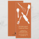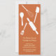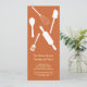 Invitation vos invités avec style avec ces invitations branchées et modernes de Thanksgiving. La carte est munie d'un éventail d'ustensiles de cuisine contre un arrière - plan orange profond. Ces invitations Thanksgiving de 4 po x 9,25 po sont des cartes plates avec enveloppes.