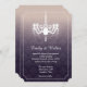Elégant design de carte d'invitation de mariage avec un lustre blanc éclatant et une silhouette de luminaire sur le dessus de la carte. La couleur arrière - plan est un dégradé chic violet à beige clair avec un motif damassé clair comme décoration.