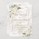 Elégant design de carte avec aquarelle délicate fleurs crème blanche et feuilles verts, séparateur floral, cadre faux or, sur arrière - plan de marbre crème blanche. Sur le dos bouquet de fleurs blanches. Utilisez l'outil Personnaliser pour ajouter vos informations, modifier les polices, les couleurs de la police. Pour les articles correspondants, veuillez visiter ma collection de Baby showers de fleurs d'aquarelle