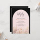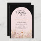 Une élégante invitation fleur sauvage. Un arrière - plan noir et une arche rose. Décoré de fleurs sauvages couleur eau dans le beige, rose.