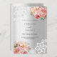 Pour un 25ème anniversaire de mariage élégant et romantique. Un faux arrière - plan d'aspect argent décoré de fleurs roses, de roses et de dentelle blanche. Personnalisez et ajoutez vos noms et détails.