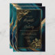 Invitation Luxe Turquoise Agate Gold Frame QR Code Mariage
