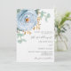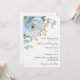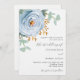 Un arrière - plan blanc chic. Décoré d'un bleu poussiéreux floral, fleur rose et feuilles d'eucalyptus vert couleur eau, sprigs, verdure et sprigs faux or. Personnalisez et ajoutez vos noms et les détails du mariage.