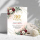 Invitation Luxury Deep Red Floral Gold 90th Birthday Invite