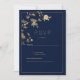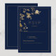 Invitation Luxury modern gold floral navy blue RSVP