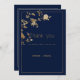 Invitation Luxury modern gold floral navy blue Thank You