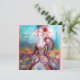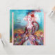 Conception élégante, colorée, raffinée et fantaisiste dans des couleurs vives, fuchsia, sarcelle, turquoise, blanc. Belle femme sophistiquée aux cheveux blonds-blanchâtres, tissus bleus et roses scintillants dorés d'un costume baroque avec des plumes et une rose rouge. Peinture originale à l'aquarelle et à l'acrylique avec feuille d'or et couleurs iridescentes sur toile. Cette carte cool et artistique est parfaite pour les mariages, cérémonies nuptiales, enterrements de vie de jeune fille, sweet 16, fêtes d'anniversaire de quinceañera, bals costumés, fiançailles romantiques, faire-part de save the date, Noël, fêtes de bureau, réunions de famille, cocktails, célébrations du réveillon du Nouvel An, anniversaires, rassemblements, concerts, récitals ou presque tous les
