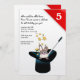 Un lapin adorable fait une pointe sa tête au-dessus de la jante du casquette magique en tant qu'étoiles éclatées derrière lui. Le ruban rouge faisant le coin peut tenir le nombre d'âge. Une invitation terrible pour la partie magique d'un enfant. Il est facile customiser la carte avec vos mots, police, couleur de police et choix de six types de papier.