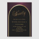Une élégante invitation magnétique 90ème anniversaire. Un arrière - plan noir et bordeaux avec une arche dorée à l'avant.