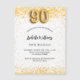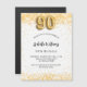 Pour une soirée élégante de 90ème anniversaire. Un arrière - plan blanc chic. Décoré de parties scintillant en faux or, brille. Personnalisez et ajoutez un nom, un âge et des détails de la fête. Le nom est écrit avec un script de style écrit à la main. Numéro 90 avec police de style ballon.