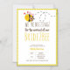 Super mignon fun et moderne Bee thème de la douche nuptiale Invitation ...au Royaume-Uni, nous disons que nous sommes "bourdonnants" quand nous sommes excités et donc cet invitation dit "nous bourdonnons sur l'arrivée de notre Bride2bee" ! Arrière - plan motif brillant à pois jaune et blanc, avec une jolie abeille humoristique avec coeur d'amour rouge et un anneau mariage or et la typographie moderne. Pour les articles correspondants tels que le programme de fête, les étiquettes cadeaux, carte de remerciements, le concepteur de gouttes LeahG une ligne et elle sera heureux d'aider avec votre demande personnalisée.