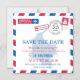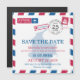 Un plaisir créatif Voyage thème Anniversaire Célébration Enregistrer la Date pour envoyer à tous vos invités avec ce design Red and Blue Airmail. Carte de la Colombie placée au centre du design dans une couleur bleu clair. Pour toute question sur les changements de conception personnalisés par le concepteur indépendant, veuillez envoyer un courriel à paula@labellarue.com AVANT de customiser ou de passer une commande.