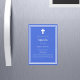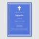 Un arrière - plan bleu royal, décoré d'un cadre blanc, et d'une croix blanche Personnalisez et ajoutez le nom et les détails. Texte blanc.