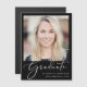 Invitation Magnétique Élégant Script Photo Black Graduation