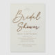 Simple Gold Script Bridal Shower Invitation avec élégante calligraphie manuscrite et type minimal. Le dos est magique. Cliquez sur le bouton Modifier pour customiser cette conception.