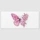 Flower arrangement of pink butterfly with rose Japanese cherry blossoms on white background.