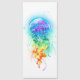Grande méduse irisée, artistiquement dessinée, brillante, avec de longues tentacules sur le blanc, peinte sur l'arrière - plan multicolore. Méduse arc-en-ciel.