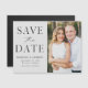 Annoncez votre date de mariage avec cette photo moderne et élégante enregistrez l'aimant de date. Le design comporte "Save the Date" en noir serif et des polices de script avec un arrière - plan gris clair. Personnalisez le minimaliste enregistrez l'aimant de date en ajoutant vos noms, date, emplacement du mariage et photo. Le simple enregistrement de l'aimant date est parfait pour tout thème mariage.