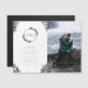 Cette invitation pliée est un choix fantastique pour tout couple qui souhaite envoyer une carte de voeux traditionnelle avec un message personnel à ses invités. Sur la moitié gauche de ce design, il y a 4 magnifiques bouquets bleu-poussiéreux de feuilles délicats et des fleurs dans les coins avec un monogramme de vos initiales au centre encadré d'une parties scintillant dorée et d'une couronne fleurie. Sous votre monogramme se trouve votre typographie d'invitation dans un mélange de polices classe, mais moderne. Sur la droite se trouve une photo du couple. Remplacez le texte de l'espace réservé et la photo en cliquant sur le bouton "personnaliser".