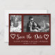 Moderne bordeaux pinceau écriture fantaisie enregistrer la date mariage avec 2 photos collage - l'un vertical / portrait orienté et l'autre horizontal / paysage et deux coeurs doodle. ++++++++++++++ Personnalisez-le avec vos photos, noms et date de mariage !
