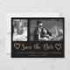 Scénario de calligraphie de parties scintillant en faux cuivre moderne sauvegarder la date mariage carte magnétique avec 2 photos collage - un vertical / portrait orienté et l'autre horizontal / paysage. et deux coeurs doddle. +++++++++++++++++++++ Personnalisez-le avec vos photos, noms et date mariage !